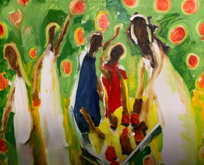 На выставке также представлены работы Оборотистова последних лет — в основном 2025 года, где художник, как случайный прохожий, наблюдает за сценами городской жизни и воплощает их в жизнеутверждающей экспрессивной стилистике.