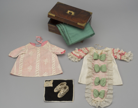Одним из центральных экспонатов является мундирное платье, которое Екатерина надевала во время праздников гвардейских полков. В середине лета, после ротации чувствительных к свету произведений графики и костюмов, это платье сменится в выставочной экспозиции на другой мундирный костюм императрицы.
